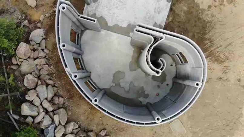 Una pequeña casa impresa en 3D recientemente presentada se encuentra en Procter, Columbia Británica, Canadá, en lo que parece ser una parcela de tierra increíblemente pintoresca con vistas a las montañas, pinos altos y un lago. Sus creadores la llamaron Casa Fibonacci por su forma de espiral; el diseño evita las líneas rectas tanto como sea posible, y desde arriba sus paredes se parecen mucho a una concha.