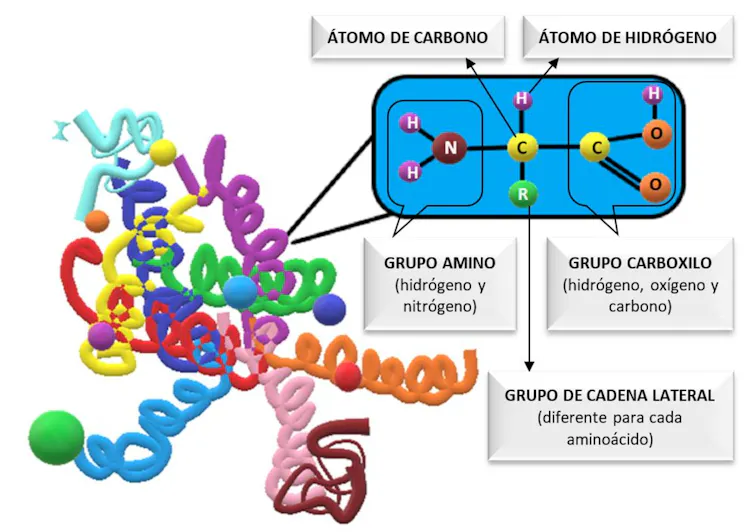 Pero empecemos por el principio. Las proteínas son macromoléculas constituidas por cadenas lineales de aminoácidos. Forman parte de todos los seres vivos, donde ejercen miles de funciones esenciales.
