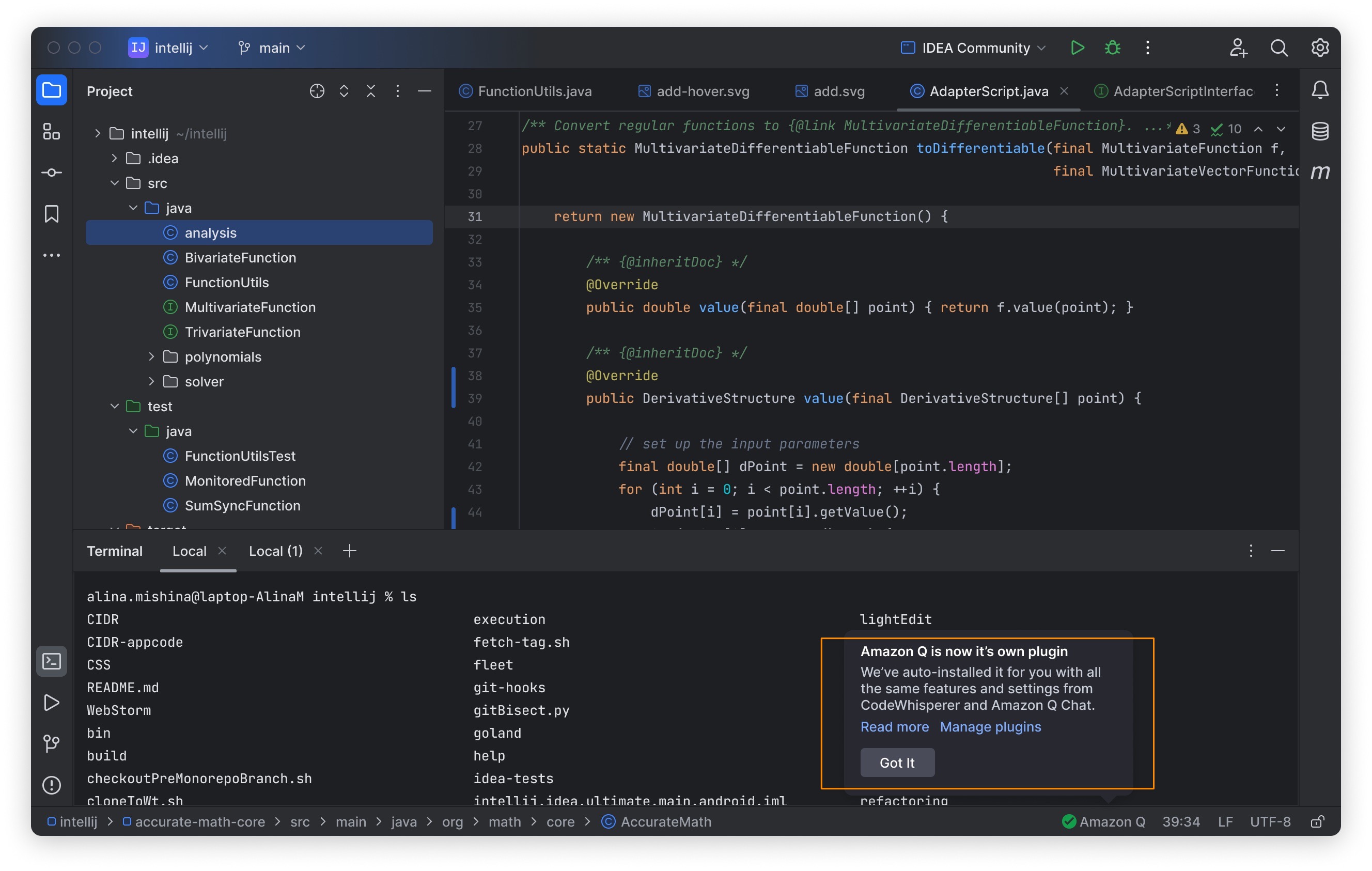 As part of the update, we also released an Amazon Q integrated development environment (IDE) extension for Visual Studio Code and JetBrains IDEs. Now, you will see two extensions in the IDE marketplaces: (1) Amazon Q and (2) AWS Toolkit.