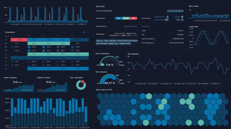 Zabbix es una solución de monitoreo distribuido de código abierto de clase empresarial. Este software permite monitorear numerosos parámetros de una red, así como la salud y la integridad de servidores, máquinas virtuales, aplicaciones, servicios, bases de datos y más. Zabbix fue creado por Alexei Vladishev y está diseñado para registrar el estado de varios servicios de red y hardware. Utiliza bases de datos como MySQL, PostgreSQL, SQLite, Oracle o IBM DB2 para almacenar datos. Además, Zabbix ofrece informes detallados y visualizaciones de los datos recogidos de diversos dispositivos y sistemas.