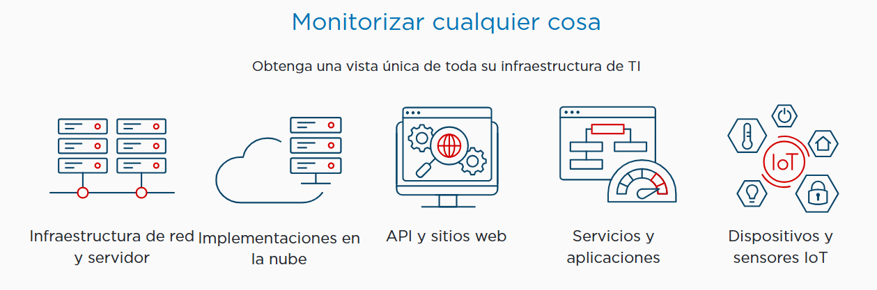 Monitorea cualquier cosa: redes, nube, sitios web, IoT y más. En cualquier momento y lugar.