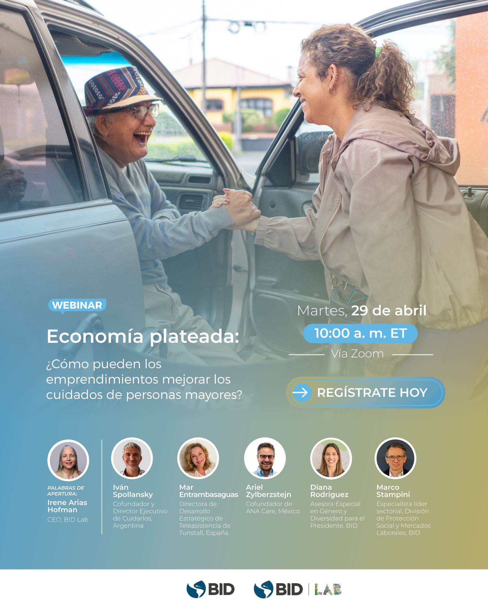 En el marco del lanzamiento de BID Cuida, la nueva estrategia del BID que busca expandir los servicios de cuidado y fortalecer su infraestructura en la región, los invitamos a este webinar donde se discutirán hallazgos clave, así como experiencias y recomendaciones sobre cómo los emprendimientos de la economía plateada pueden contribuir a mejorar la calidad del cuidado que reciben las personas mayores.