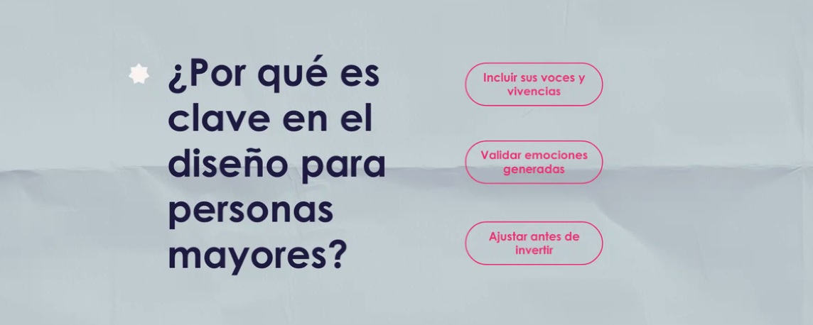Considerar la perspectiva de las personas mayores al diseñar productos, servicios y entornos para asegurar que sean fáciles de usar, intuitivos y agradables.