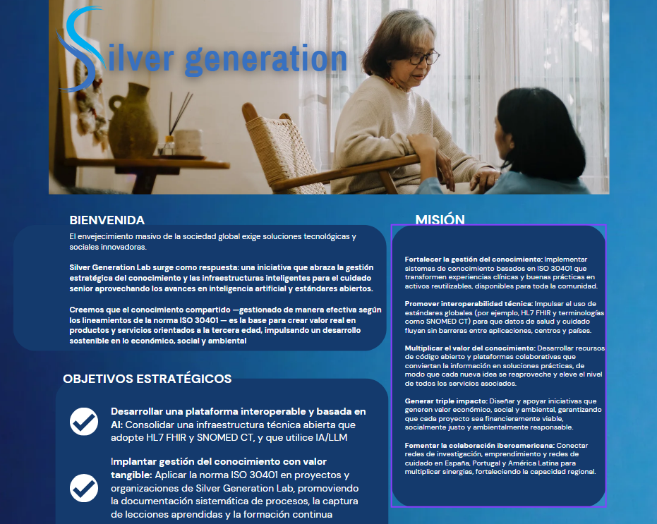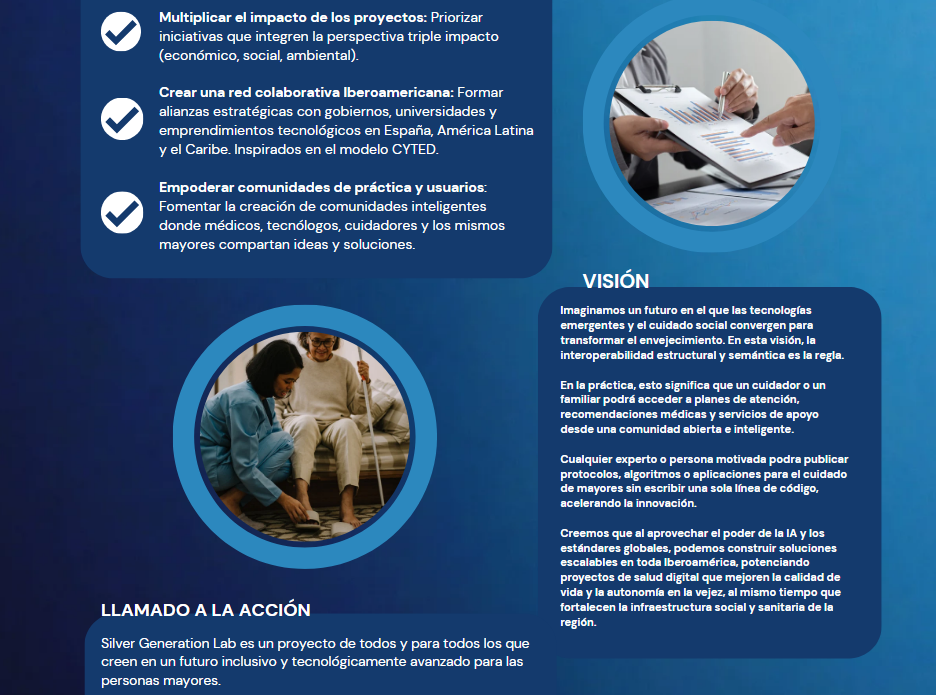 Silver Generation Lab surge en mayo 28, 2025, como resultado del acuerdo entre emprendedores de Latinoamérica y el Caribe dedicados a desarrollar interoperabilidad en sus productos y servicios para la Generación Plateada.