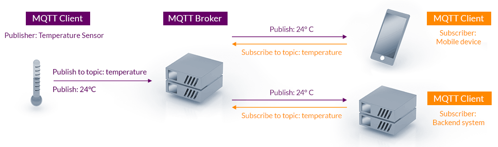 MQTT opera bajo un modelo de publicación-suscripción. Un agente MQTT (o servidor) recibe mensajes de los clientes y los reenvía a los clientes suscritos a temas específicos.
