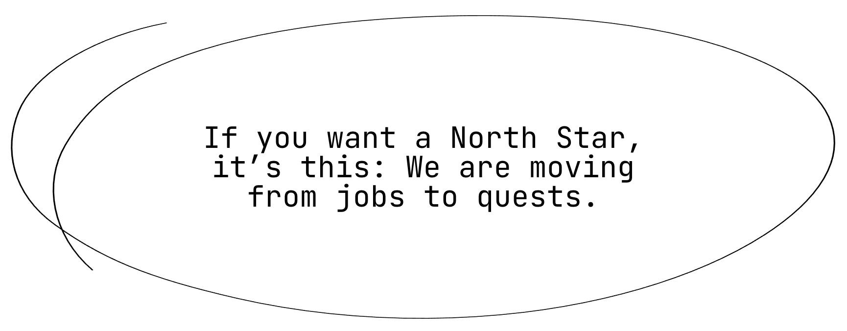 Si quieres una Estrella del Norte, es esta: Estamos pasando de los trabajos a las misiones. No un trabajo temporal de Fiverrized escrito eternamente, sino un trabajo componible que reúne a un equipo humano y una cohorte de agentes en torno a un resultado específico durante un tiempo definido.