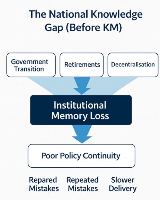 El potencial es enorme. Por ejemplo, imaginemos a un ingeniero de transporte sénior en Nairobi que desarrolló una solución alternativa para los problemas de drenaje. Si esa información no se registra ni se comparte, condados como Kisumu o Mombasa podrían pasar años realizando el mismo trabajo de descubrimiento. Con un enfoque estructurado y estratégico de la Gestión del Conocimiento, esas lecciones se vuelven inmediatamente prácticas, reduciendo el desperdicio y acelerando el desarrollo.