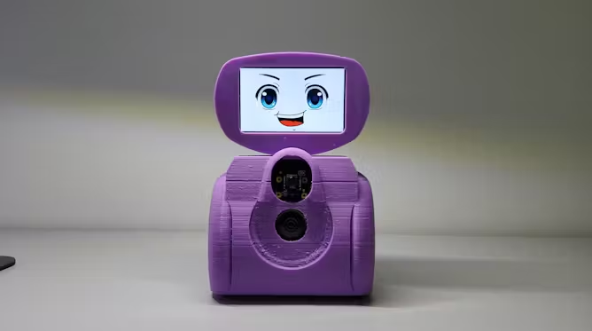 El robot desarrollado en nuestro equipo cuenta con micrófono, altavoces y una interfaz amigable, que simula expresiones faciales, con el fin de facilitar la comunicación con los pequeños.