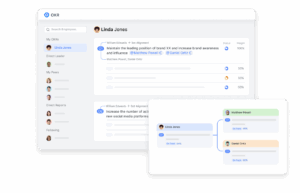 Los líderes pueden establecer objetivos para toda la empresa, y los equipos pueden definir sus propios resultados clave alineados con esos objetivos. Las actualizaciones de progreso se realizan automáticamente, ofreciendo visibilidad sobre cómo cada esfuerzo contribuye al objetivo general.
