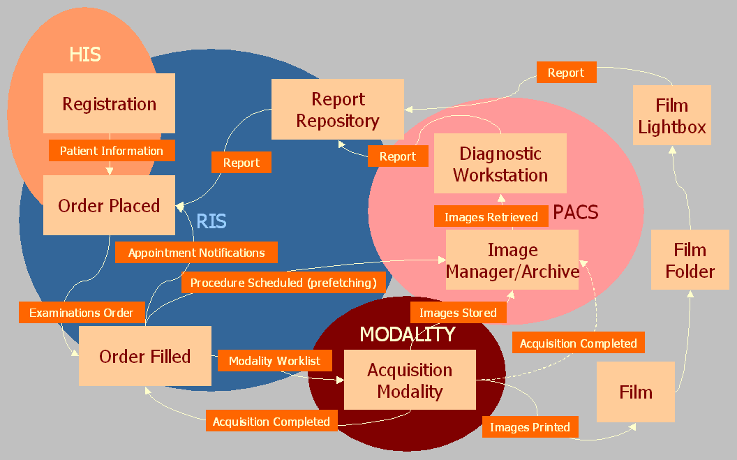 Si la necesidad es intercambiar estudios de imagen entre sistemas, IHE suele apoyarse en perfiles del dominio de radiología y en flujos de intercambio de documentos o imágenes, porque los perfiles están diseñados precisamente para cubrir casos de uso clínicos concretos de interoperabilidad.